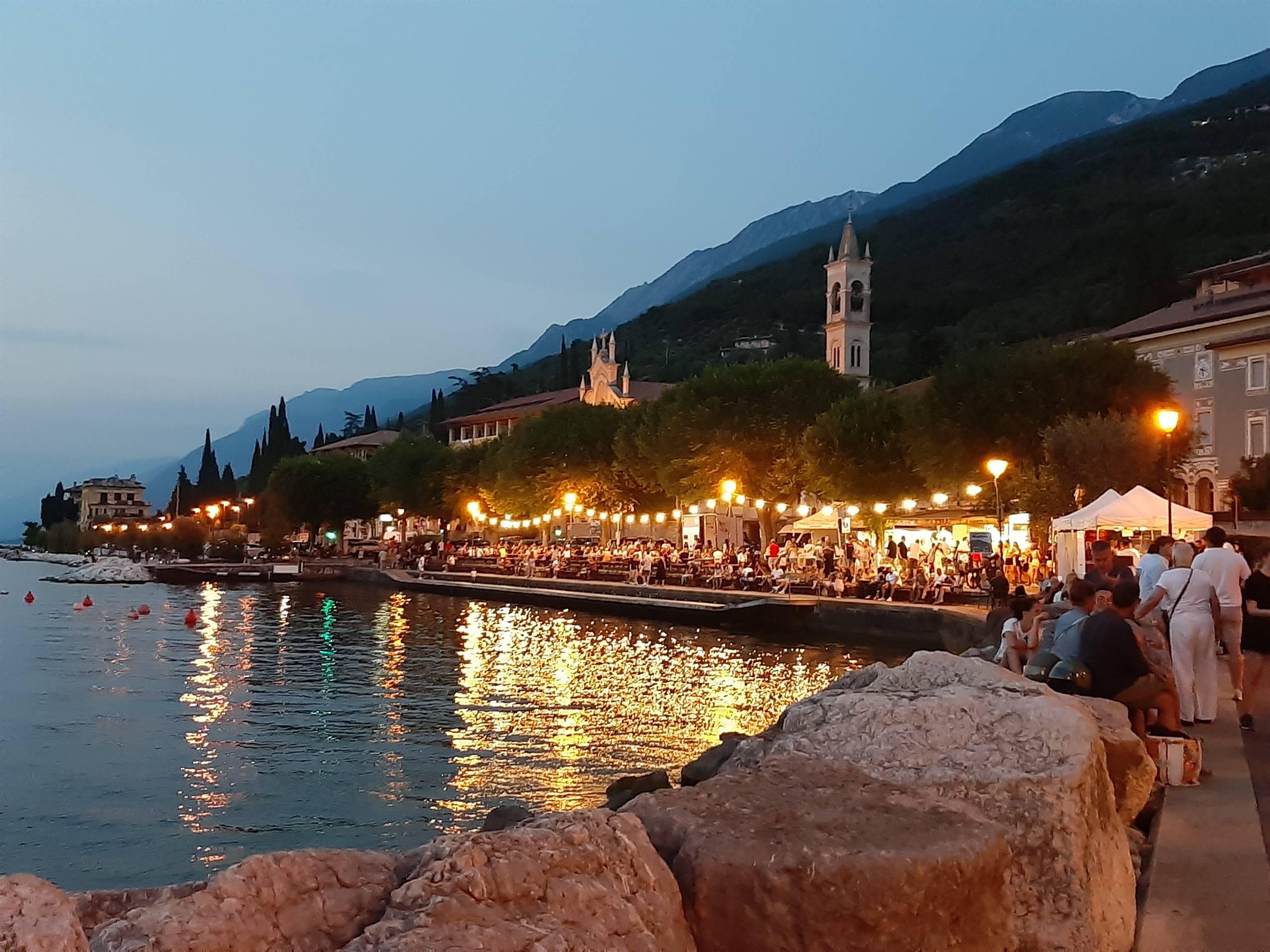 La festa continua la sera in Piazza M.M.D. Mantovani con i caratteristici tavoli a bordo lago per gustare il pesce e con la musica fino a tarda serata con Musica dal Vivo