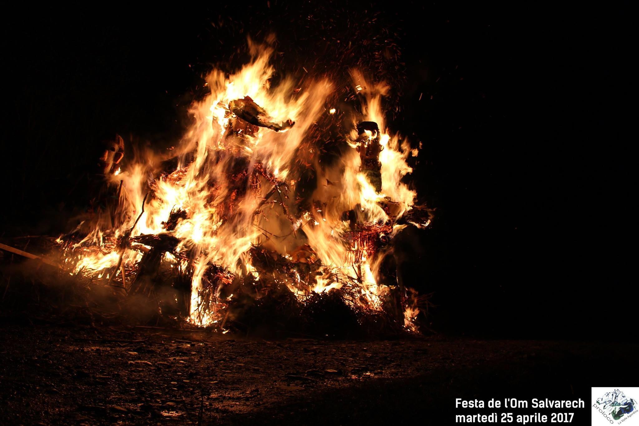 Questo personaggio silvano è molto schivo e non vuole essere visto dall’uomo, tranne nel giorno della sua festa quando viene impersonificato in un grande pupazzo. Così ogni anno il 25 aprile, nel giorno di San Marco, viene realizzato il pop de l’Om Salvarech, un fantoccio in canne di granoturco vestito di stracci, il quale viene fatto sfilare per tutto il paese accompagnato dalle grida dei bambini Viva! Viva l’Om Salvarech!, e alla sera bruciato in un grande falò appena fuori dal centro abitato.