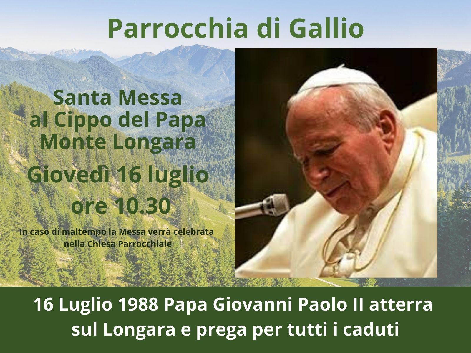 SANTA MESSA AL CIPPO DEL PAPA 38° anniversario della visita di Papa Giovanni II in Altopiano