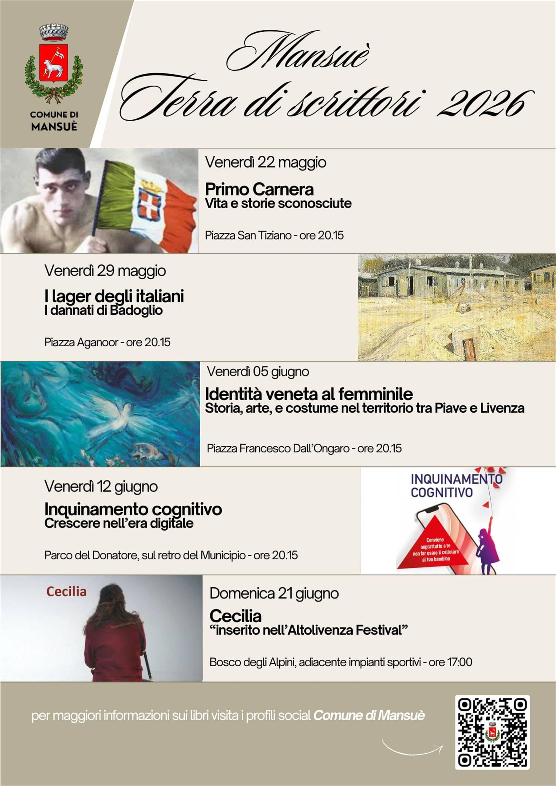 Nel suggestivo scenario del Veneto, il Comune di Mansuè presenta la prima edizione di “Mansuè Terra di Scrittori 2026”, una rassegna che unisce il piacere della lettura alla scoperta del territorio.