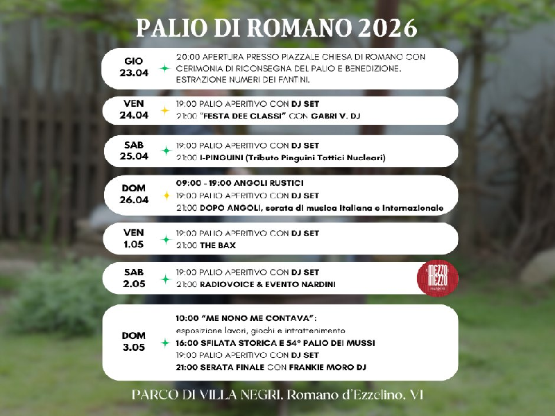 Dal 23 aprile al 3 maggio vi aspettiamo a Romano d'Ezzelino per due weekend di festa!