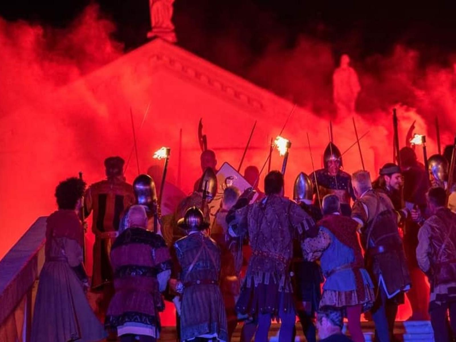 Si tratta di una suggestiva ricostruzione storica che coinvolge centinaia di figuranti in abiti del Trecento, tra spadaccini e tamburini, capaci di trasportare il pubblico in un autentico e affascinante clima medievale