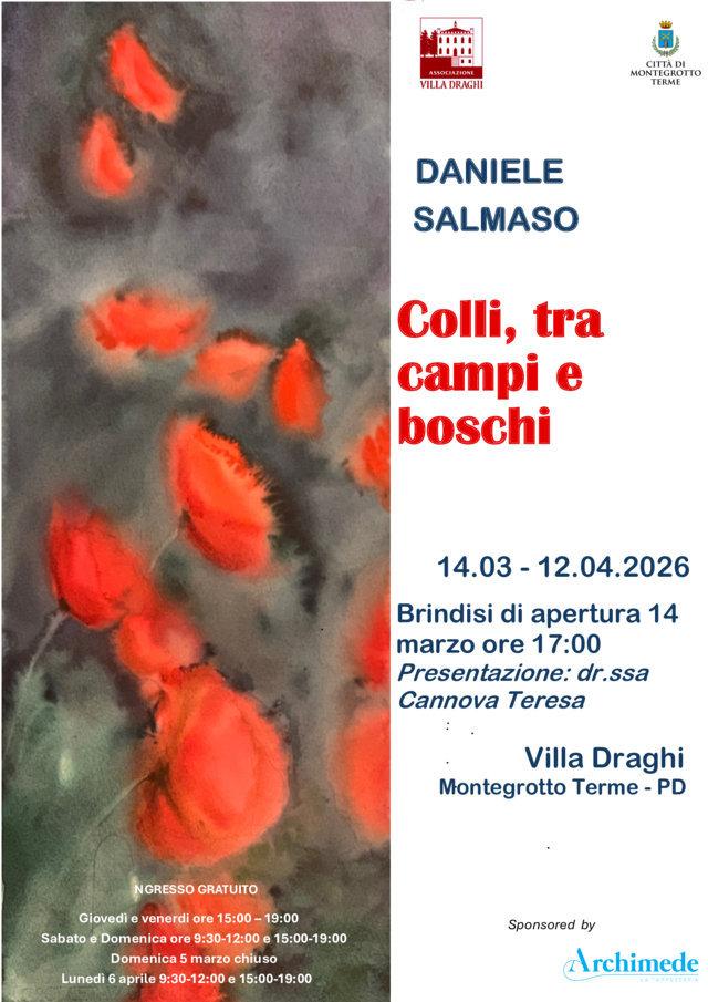 Siamo lieti di presentare la mostra di Daniele Salmaso, “Colli, tra campi e boschi”, in programma dal 14 marzo al 12 aprile 2026 presso la Sala delle Carrozze di Villa Draghi.