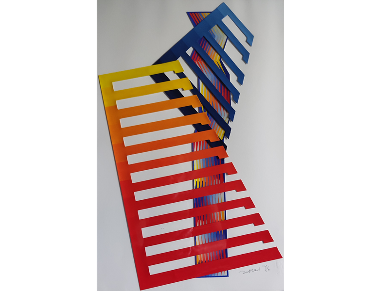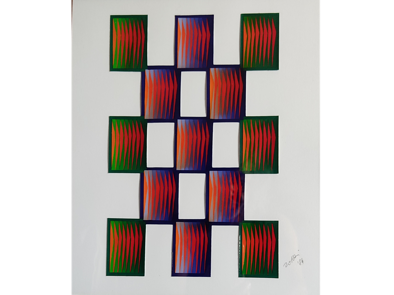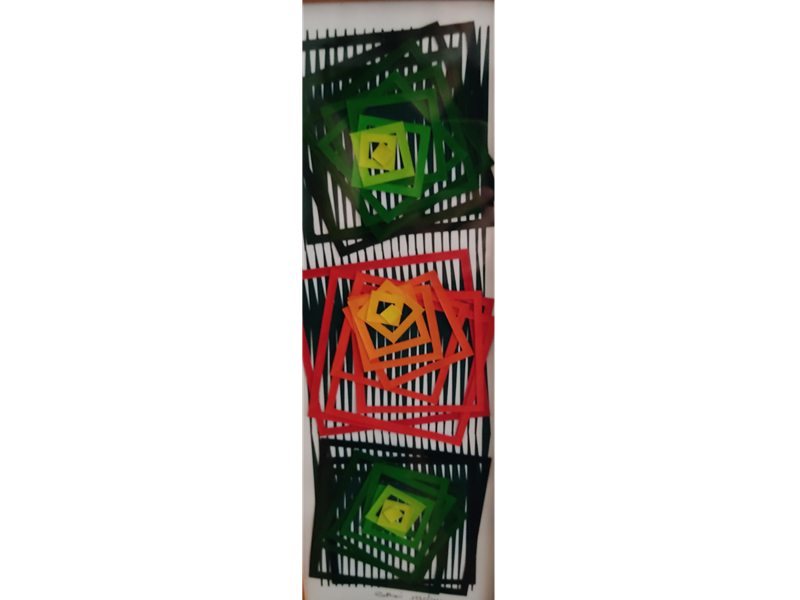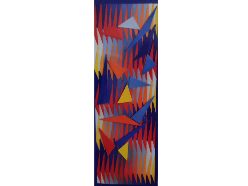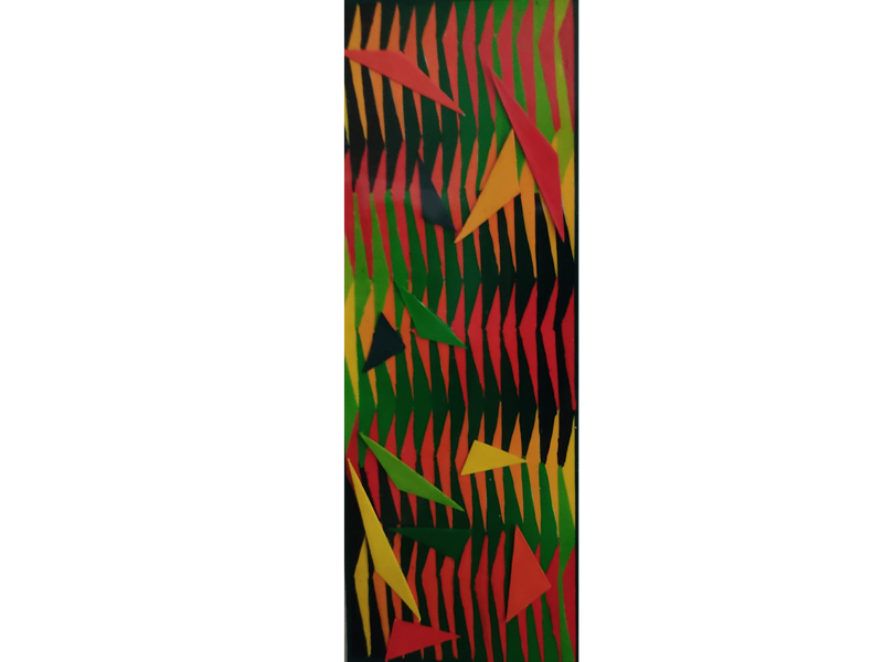 In mostra una quarantina di opere di dimensioni varie, realizzate dai primi anni '70 Fino ad oggi, con ritagli a mano su cartone, dipinti ad uno ad uno con colori a tempera, e ricoperti prevalentemente di vernice cristallizzante. Il fine e' il raggiungimento dell'effetto tridimensionale da due piani ad un piano unico, nonché il raggiungimento dell' effetto "ottico -cinetico-cromatico-virtuale".