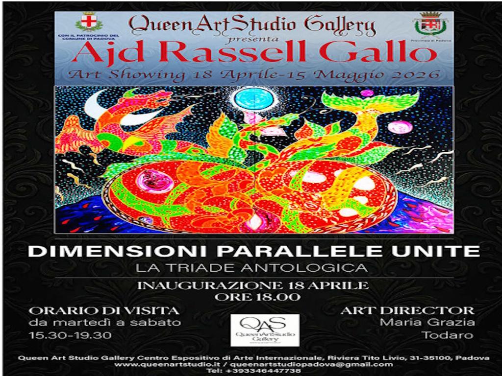 La mostra "Dimensioni Parallele Unite" di Ajd Rassell Gallo, ospitata presso la prestigiosa QueenArtStudio Gallery di Padova dal 18 Aprile al 15 Maggio 2026, rappresenta il culmine di un percorso artistico e concettuale straordinario.