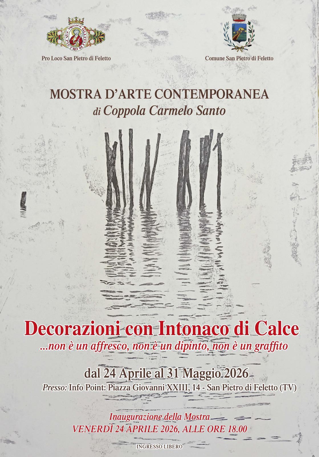 Il Comune di San Pietro di Feletto e la Pro Loco presentano la mostra d'arte contemporanea di Coppola Carmelo Santo, un percorso espositivo unico dedicato alle Decorazioni con Intonaco di Calce.