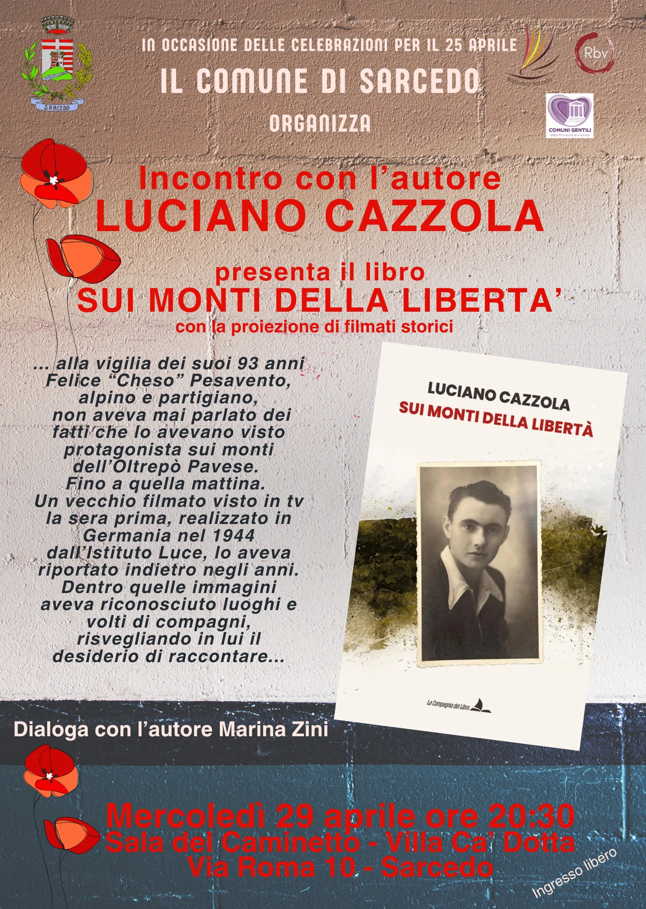 Mercoledì 29 aprile 2026 alle ore 20:30 presso la Sala del Caminetto di Villa Ca' Dotta del Comune di Sarcedo si terrà un incontro con l'autore Luciano Cazzola dove presenterà il suo libro "Sui Monti della Libertà" con la proiezione di filmati storici.