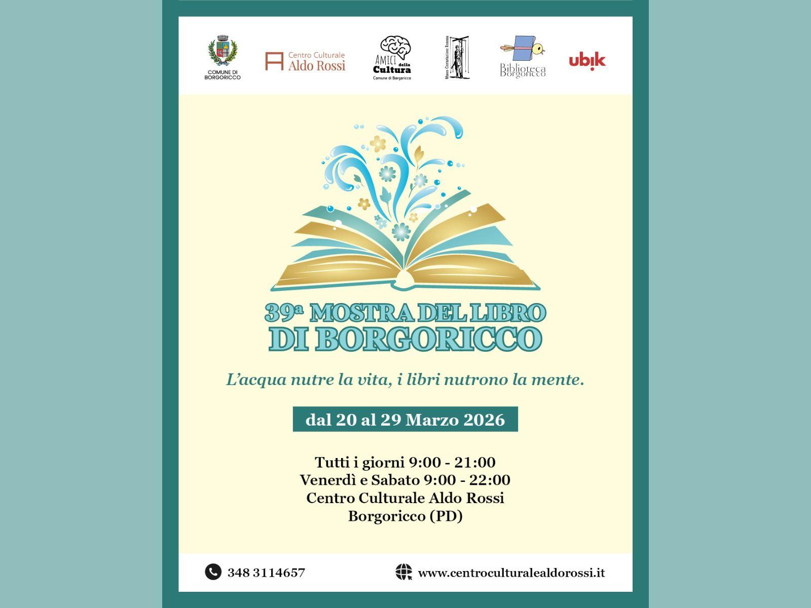 Dal 20 al 29 marzo 2026, Borgoricco ospiterà la 39° MOSTRA DEL LIBRO con moltissimi autori ospiti che presenteranno i loro libri.