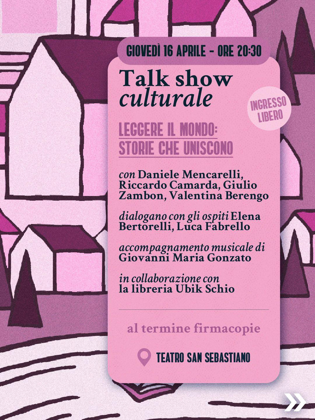 - Giovedì 16 aprile dalle ore 20:30 "Talk Show Culturale"