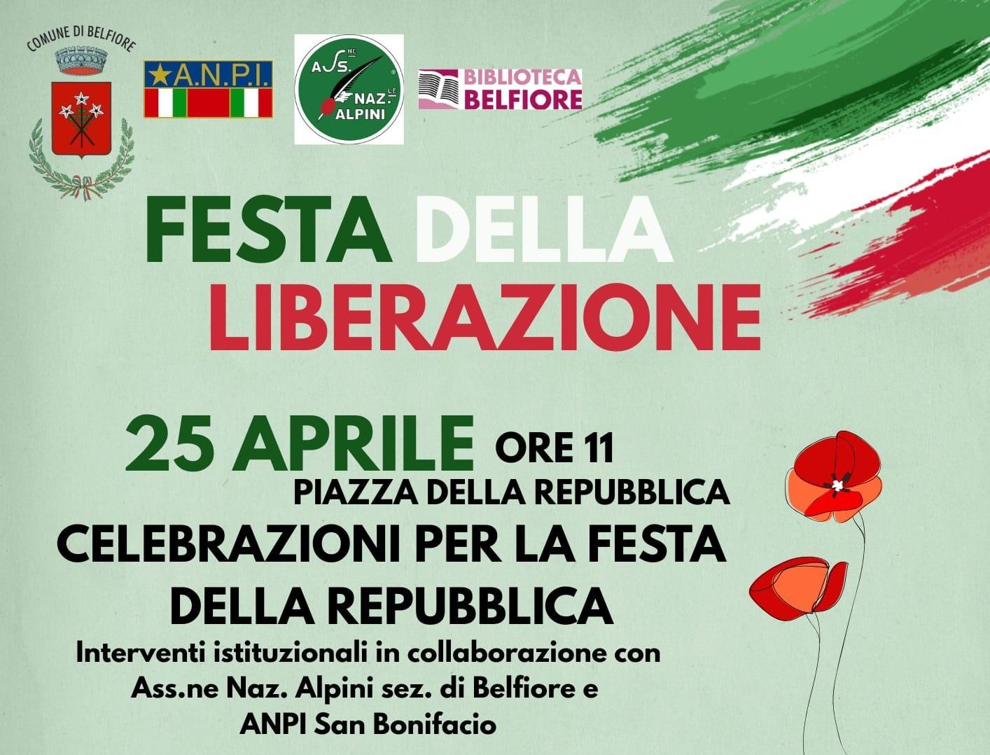 - Sabato 25 aprile: Celebrazioni istituzionali presso Piazza della Repubblica con la presenza dell'Ass.ne Alpini di Belfiore e dell'Ass.ne ANPI di San Bonifacio.