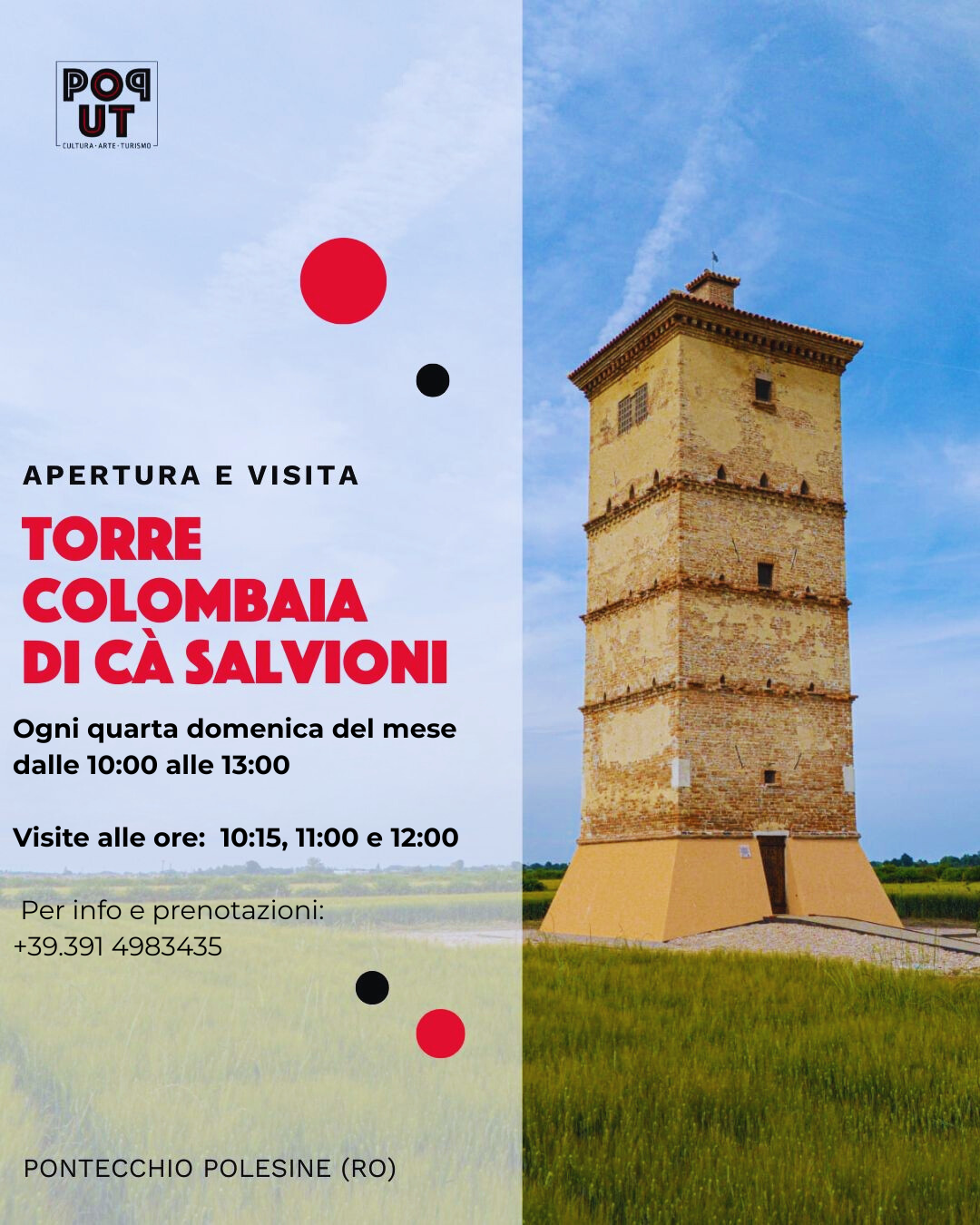 Ogni 4a domenica del mese, dalle 10 alle 13, sarà possibile visitare la Torre Colombaia di Cà Salvioni a Pontecchio Polesine.