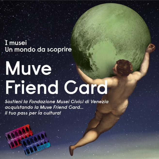 accesso gratuito e illimitato alle collezioni permanenti degli 11 Musei Civici di Venezia, esclusa la Torre dell’Orologio, e alle mostre Muve ospitate al Centro Culturale Candiani e a Forte Marghera (per i residenti e i nati nel Comune di Venezia l’ingresso gratuito è esteso anche a un accompagnatore)