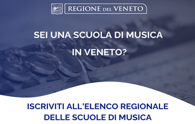 Elenco regionale delle scuole di musica Apertura dei termini per la presentazione delle domande di iscrizione all’elenco regionale delle scuole di musica del Veneto.Dal 15 maggio al 30 giugno 2025 è possibile richiedere l’iscrizione all’elenco regionale delle scuole di musica, istituito con L.R. 21.3.2024, n. 8.