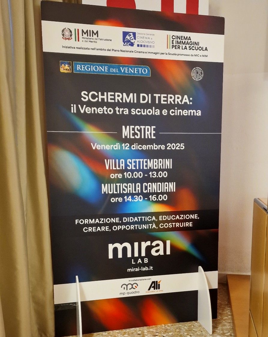 Venerdì 12 dicembre 2025 Villa Settembrini e il Multisala Candiani di Mestre hanno ospitato “Schermi di terra: il Veneto tra scuola e cinema”, una giornata di confronto sul rapporto tra scuola, territorio e sala cinematografica, promossa da AGIS, realtà da sempre attiva nella valorizzazione della cultura cinematografica sul territorio, con il sostegno della Regione del Veneto, in collaborazione con MPQuadro di Verona e con Alì Supermercati di Padova.