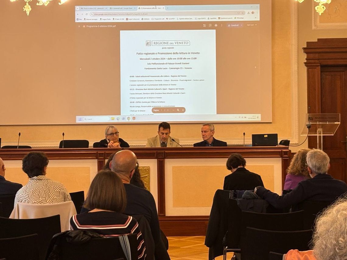 E' stato presentato a Palazzo Grandi Stazioni a Venezia il Patto regionale per la lettura in Veneto, lo strumento di governance regionale delle politiche di promozione del libro e della lettura sul territorio, istituito con Delibera regionale n. 1624/2021.