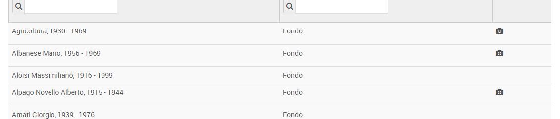 Nel sistema, i fondi integralmente fotografici e i fondi che presentano una significativa sezione fotografica risultano segnalati nell’elenco degli archivi con l’icona della macchina fotografica.