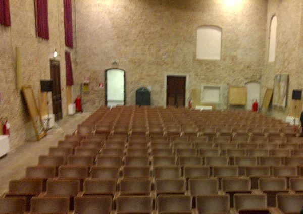 Situato nell'omonima calle del centro storico di Chioggia, che confluisce nella piazza in corrispondenza del lato nord del Palazzo municipale, è ricavato dalla ristrutturazione dell'antica chiesa del complesso conventuale dellordine degli Agostiniani, che comprende anche l'adiacente convento utilizzato come scuola materna. Si tratta dell'edificio religioso più antico tra quelli tuttora esistenti in città, che risale al 1211. Dedicato al santo protettore dei calafati, costruttori di barche. I padri Eremitani di Sant'Agostino officiarono in questa chiesa fino al 1772, anno in cui venne soppresso l'attiguo convento che passò in proprietà alla nobile famiglia dei Fattorini. Il convento poi passò al pio conservatorio delle Zitelle. L'impianto dell'edificio dal tetto a capriate lignee, sostenute da piedritti in legno alla stessa maniera degli edifici medioevali presenta impronte gotiche, tra cui gli archetti pensili ad ogiva sotto la spiovenza del tetto e nella linea del portale d'ingresso ed anche alcune tracce di affreschi di scuola giottesca. Un tempo conservava anche preziose tele di artisti veneti del periodo manierista, poi sistemate in altre chiese cittadine. Ridotto per molti anni a magazzino comunale, negli anni '80 è stato oggetto di un laborioso progetto di restauro conservativo finalizzato a creare un auditorium cittadino. L'edificio ha un'ottima acustica e si presta ottimamente a concerti di musica classica e corale, ma anche a conferenze e non complesse rappresentazioni teatrali. E' collaudato per 300 posti a sedere. E' ambiente climatizzato.
