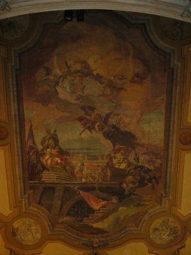 Degli affreschi originali, oltre ad alcuni lacerti, rimane il grande affresco del soffitto dell'aula, attribuito ad Antonio Zanchi (1631-1722) rappresentante il martirio di Santa Margherita di Antiochia.
