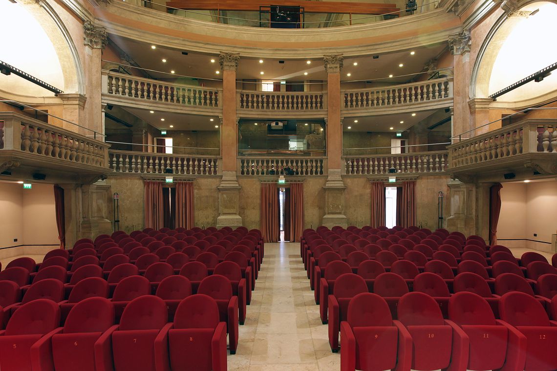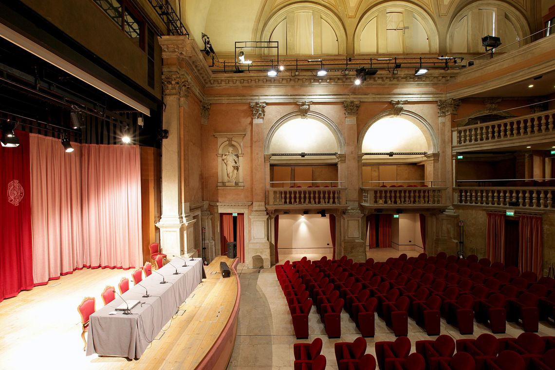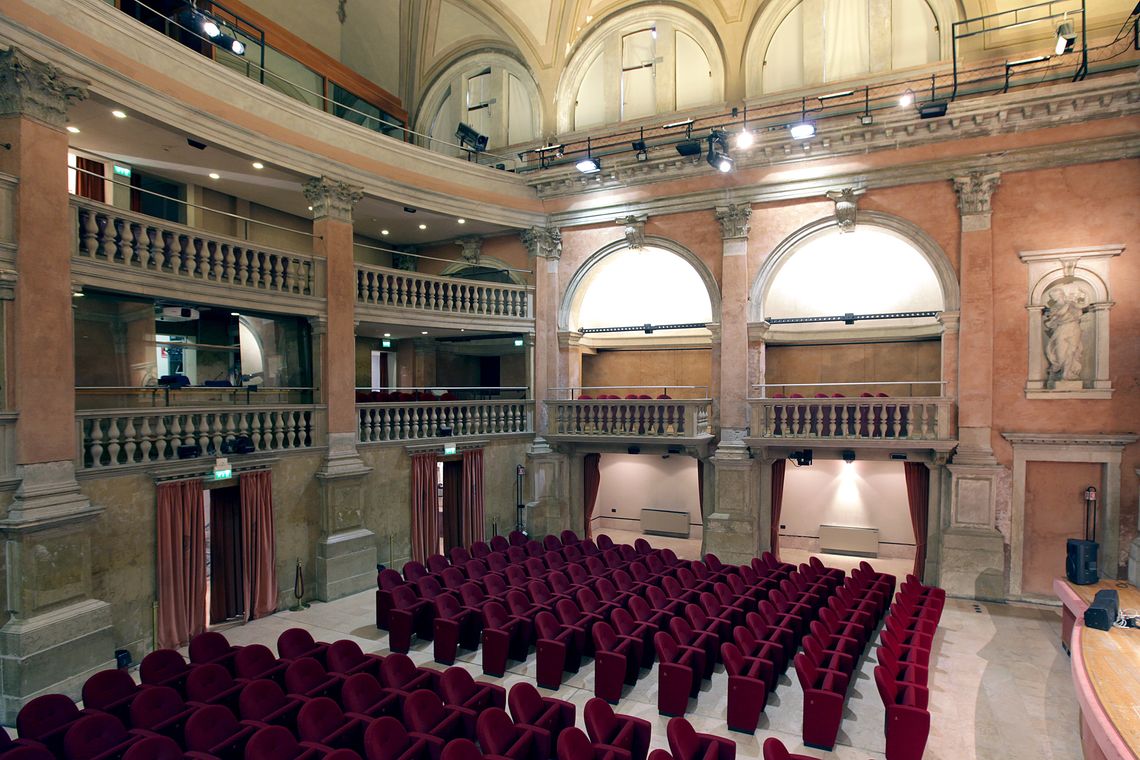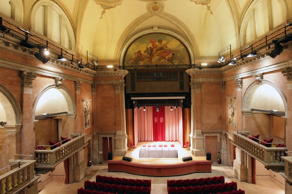 L'edificio, vincolato dalla Soprintendenza ai Monumenti, è stato acquistato da Ca' Foscari in data 23 gennaio 1987. L'ateneo ne ha disposto un adeguamento a finalità didattiche e di rappresentanza, provvedendo alla messa a norma del sistema antincendio, alla risistemazione del sistema d'ingresso e delle uscite di sicurezza, al restauro dell'affresco dello Zanchi e degli elementi decorativi della sala (stucchi, ecc.), al nuovo arredo con adeguate poltroncine in materiali ignifughi, alla riorganizzazione degli spazi della zona absidale, del loggione, dei servizi igienici e degli spazi tecnici (vedi progetto dell'aprile 1988).