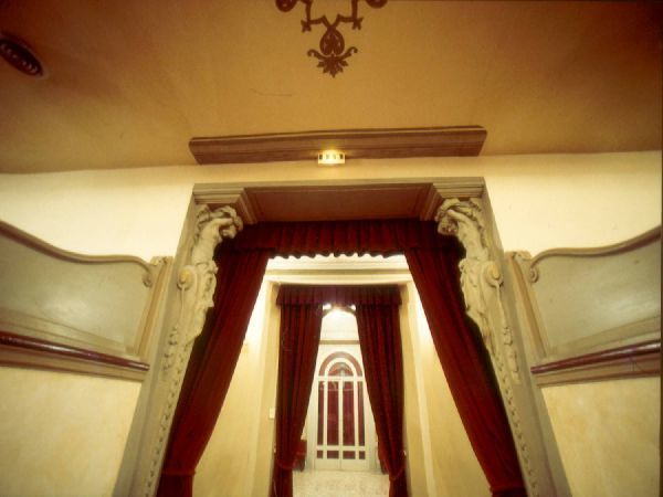 Assai elegante l'illuminazione del foyer e della sala, opera di maestri vetrai di Murano.