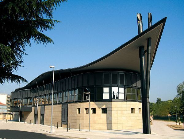 L'area nella quale si colloca il nuovo Teatro di Mirano individuata dal piano del centro storico come piano attuativo "Cime" ed l'ultima propaggine ad est del centro storico, nella congiunzione tra il canale Taglio e la strada provinciale via della Vittoria. Il progetto trae fondamento dal presupposto di creare un elemento riconoscibile all'ingresso di Mirano, una sorta di porta, rappresentata dal "Totem", due piloni di acciaio a sostegno della copertura sempre di acciaio alto tra gli otto e gli undici metri, che tracciano, alzandosi al cielo, una forma di importante effetto visivo. Il Totem sostiene una copertura di acciaio, la cosiddetta "Vela", una sorta di onda piegata dal vento che esalta la forma di cuneo dell'area. Una vela legata all'importante corso d'acqua, il Taglio del Muson, che da Mirano arriva alla Brenta e quindi a Venezia. Il piano terra forma un vero e proprio basamento del complesso, connotato dal rivestimento in trachite euganea dorata, posata a lastre orizzontali. Il livello superiore, formato da una maglia regolare di profili in acciaio e ampi serramenti vetrati, quasi smaterializza l'imponente basamento inferiore. Il terzo livello ripete la maglia di quello inferiore solo che, al posto del vetro, si trovano pannelli in lamelle d'acciaio che creano una superficie vibrante, che fa risaltare gli ampi fori inferiori. L'ultimo livello formato dalla vela, indipendente dal livello inferiore, al quale saldata da dei puntoni obliqui che, seguendo l'andamento sinuoso della copertura, sono fissati sul telaio di profili in acciaio inferiore e si raccordano al tubolare in acciaio a sezione tonda che contorna la vela stessa.