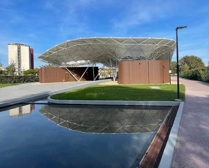 Nel cuore del Parco Urbano Termale di Abano Terme, il Thermal Forum è un moderno spazio polifunzionale dedicato a eventi culturali, spettacoli, concerti e conferenze. Progettato con un’architettura ispirata al paesaggio termale e ai Colli Euganei, unisce design contemporaneo, sostenibilità e integrazione con l’ambiente. Ambiente versatile che rappresenta un nuovo punto di riferimento per la cultura e l’intrattenimento nella città termale.