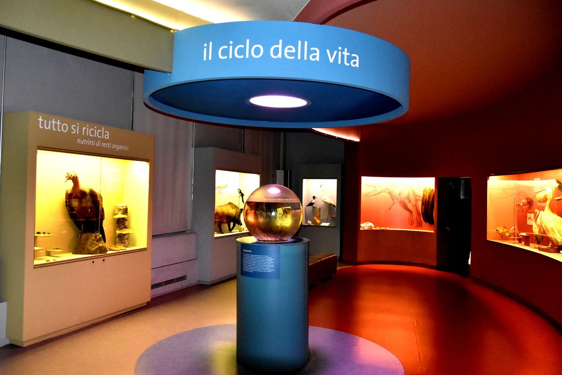 Il piano terra del Museo ospita due importanti spazi espositivi: la "Galleria dei Cetacei" con lo scheletro di una balenottera e di un giovane capodoglio e "l’Acquario delle Tegnùe", che ricostruisce un particolare ambiente roccioso sommerso dell’ Alto Adriatico. Il secondo piano ospita invece tre sezioni ognuna delle quali in realtà è un museo nel museo: "Sulle tracce della vita", dedicata ai fossili e alla paleontologia; "Raccogliere per stupire, raccogliere per studiare", racconta l’evoluzione del collezionismo naturalistico e la nascita della museologia scientifica; "Le strategie della vita" illustra la varietà delle forme viventi e la complessità di adattamenti e specializzazioni.Dettagli