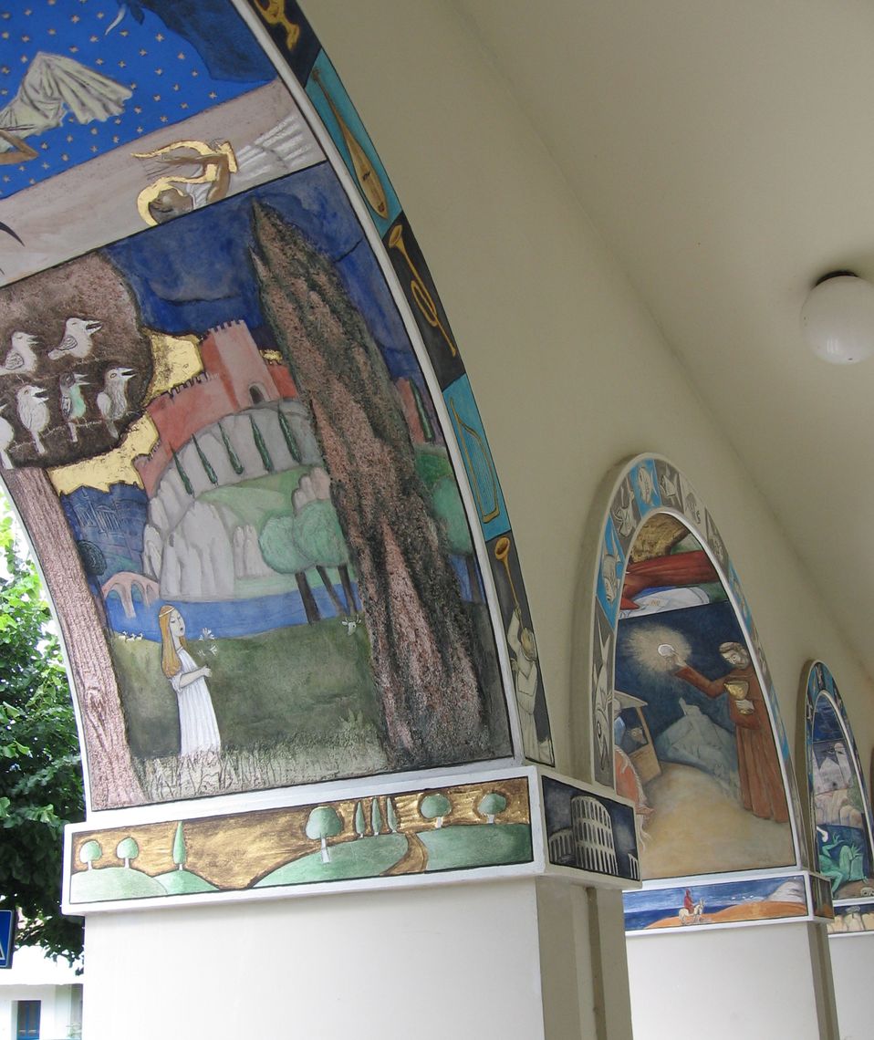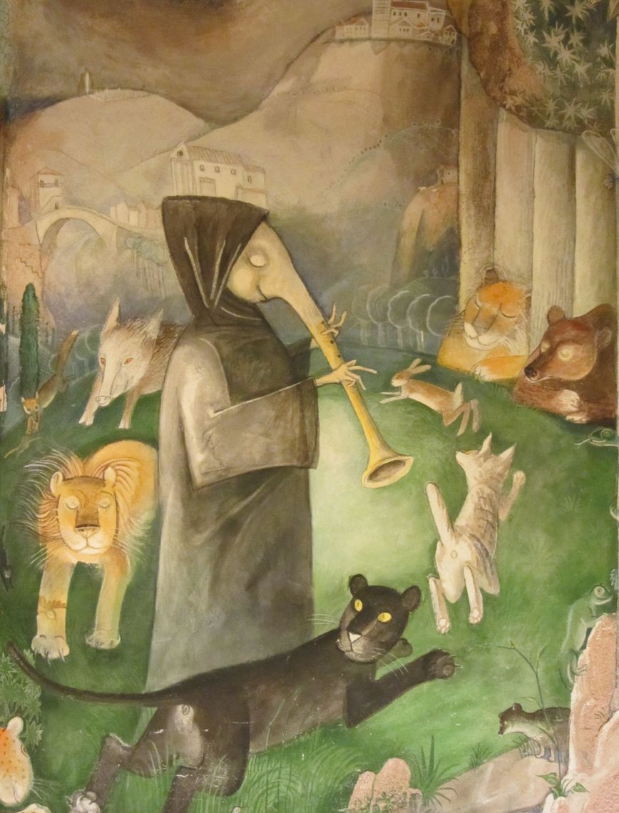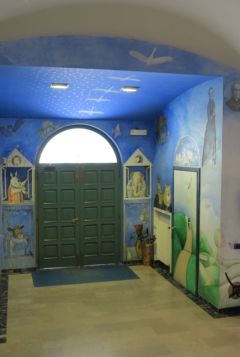 Da allora si entra in Municipio attraversando un paesaggio tra il fantastico e il reale, popolato da una fauna locale, esotica e fantastica che suona, danza e si riposa sorniona, dando il benvenuto a chi passa. Dal 2005 sono state dipinte da Wilkoń anche le cinque arcate della facciata esterna per raccontare le storie dei Santi locali: Santa Cecilia, S. Antonio di Padova, S. Giorgio, S. Pancrazio, e i Santi Canzio, Canziano e Canzianilla. Nel paese di Sarmede, inoltre, ci sono più di cinquanta affreschi e dipinti murali, realizzati da Štěpán Zavřel e altri artisti italiani e stranieri. Se Sarmede è diventato il “paese della fiaba” visitato ogni anno da migliaia di persone, se è conosciuto in Italia e in Europa per tutte le sue attività a favore dei più piccoli, lo si deve a questo illustre concittadino.