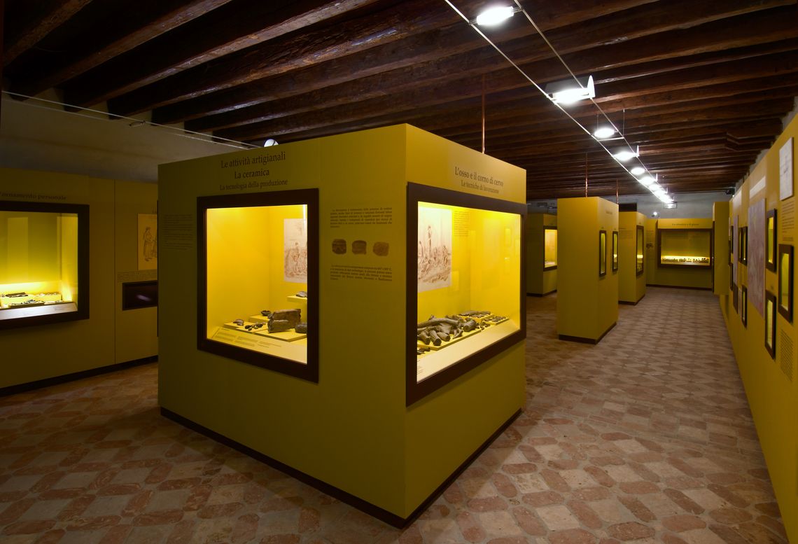 Il Museo Archeologico Nazionale di Fratta Polesine, inaugurato il 21 febbraio 2009 presso le Barchesse della Villa Badoer, rappresenta l'esito di oltre 40 anni di ricerche in Polesine, in particolare per quanto riguarda la tarda età del bronzo. I materiali esposti, sicuramente tra i più considerevoli in ambito europeo, sono riconducibili ai villaggi che popolavano l'antico fiume Po tra il XII e il X secolo a.C.: il nucleo di manufatti più importanti riporta al villaggio di Frattesina e alle due necropoli ad essa correlate rinvenute in località Narde e Fondo Zanotto. Il percorso museale si apre (sale I e II) con una presentazione dei principali siti del bronzo finale del territorio veneto (Treviso, Montagnana, Gazzo Veronese, Veronella, Garda); segue quindi un approfondimento degli insediamenti lungo l'antico ramo del Po nell'età del bronzo recente (Larda di Gavello e Castelnovo Bariano) e finale (Mariconda di Melara e Villamarzana). Infine viene analizzato l'ambiente come doveva presentarsi all'epoca e la fauna che lo popolava. La sala III, al piano terra, offre al visitatore una panoramica sulla vita e sulle attività che gli abitanti di Frattesina svolgevano durante la tarda età del bronzo. Sono descritte le principali attività di sussistenza legate alla preparazione e cottura dei cibi (forni e ollette), la filatura (fuseruole e rocchetti in ceramica), la tessitura, il gioco e gli elementi cultuali. Numerosi sono anche gli oggetti che testimoniano le attività di sussistenza quali l'agricoltura, la caccia e la pesca. Di notevole fattura risultano i manufatti riferibili alle attività artigianali, così elevate nel numero, da far pensare ad una produzione non solo finalizzata al fabbisogno interno della comunità, ma anche all'esportazione, a medio ed ampio raggio, certamente facilitata dalla presenza del Po. Sono attestate la lavorazione del bronzo, del piombo e dell'oro, dell'argilla, del vetro (senza eguali nel panorama europeo), dell'osso animale e del corno di cervo. La presenza di materie prime di provenienza esotica (uova di struzzo, avorio e ambra) suggerisce che l'importazione di tali materie era volta alla loro trasformazione in oggetti di pregio per essere quindi immessi sul mercato. Di notevole rilevanza è il cosiddetto "Tesoretto", rinvenuto all'interno dell'abitato, costituito da diversi pettini in avorio, perline di vetro e ambra, ornamenti bronzei e un recipiente del medesimo materiale che li conteneva. Il primo piano del museo (sala IV) è interamente dedicato alle necropoli rinvenute nel Fondo Zanotto, a 500 metri dall'abitato di Frattesina, e in località Narde a 600 metri dall'abitato antico, sulla sponda opposta del fiume. Il rituale rappresentato è prevalentemente quello della cremazione, anche se non mancano esempi, rari, di deposizione nella nuda terra. Il corredo è costituito generalmente da un'urna contenente i resti del defunto e oggetti di ornamento. Solo due tombe, evidentemente riferibili a personaggi di rilevante ruolo politico, contenevano all'interno del corredo una spada in bronzo, una di esse con i ribattini in oro, generalmente non presente nei corredi coevi dell'Italia settentrionale. A conclusione dell'esposizione è stata realizzata una ricostruzione di un contesto funerario, composto da un tumulo e da due sepolture ad inumazione provenienti dalle necropoli. L'installazione è corredata da un video in computer graphic che rappresenta i momenti principali del rito funerario a Frattesina, dal trasporto della salma attraverso il Po, alla cremazione, alla sepoltura.
