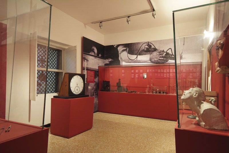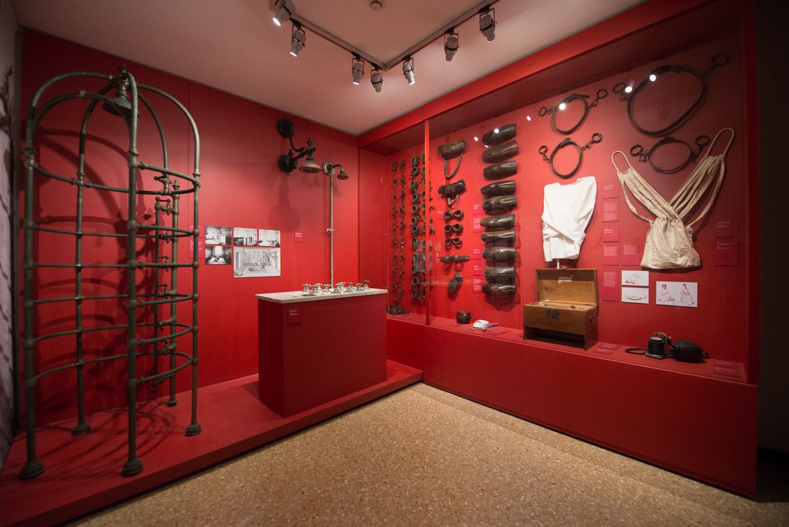 Sono esposte riproduzioni di documenti quali cartelle cliniche, registri, stampe e fotografie dei pazienti, strumenti di contenzione come manette, blocca caviglie, manicotti, docce per l’idroterapia, manufatti dei pazienti, varia strumentazione scientifica e clinica (microscopi, strumenti per elettroshock, ecc.).