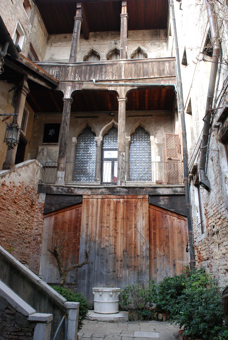 Costruito per iniziativa di Benedetto Pesaro a partire dalla metà del Quattrocento, l’edificio si presenta oggi nella sua imponente mole con una facciata verso il rio di Ca’ Michiel e con una più estesa, e tra le più complesse del gotico veneziano, sul campo di San Beneto. Il palazzo, sviluppatosi su di un complesso sorto con caratteristiche di fondaco commerciale, fu ampliato e trasformato nel corso dei secoli. La sua struttura architettonica risponde pienamente alla tradizione veneziana e vanta alcune soluzioni di rilevante pregio come le due eptafore del primo e del secondo piano nobile e un’inusuale profondità delle sale passanti tra le due facciate. Gli interni presentano alcuni elementi architettonici particolarmente rilevanti e raffinati, come gli architravi lignei e i pilastri in marmo scolpiti del primo piano nobile. Nella seconda metà dell’Ottocento il Palazzo venne frazionato in numerosi anti e appartamenti. Nel 1898 Mariano Fortuny occupò il terzo piano, stabilendovi il proprio studio. Nel corso degli anni, acquisite le altre parti dell’immobile, iniziò il lavoro di recupero della struttura riportando equilibrio e proporzione, ed elesse Palazzo Pesaro Orfei a propria dimora.