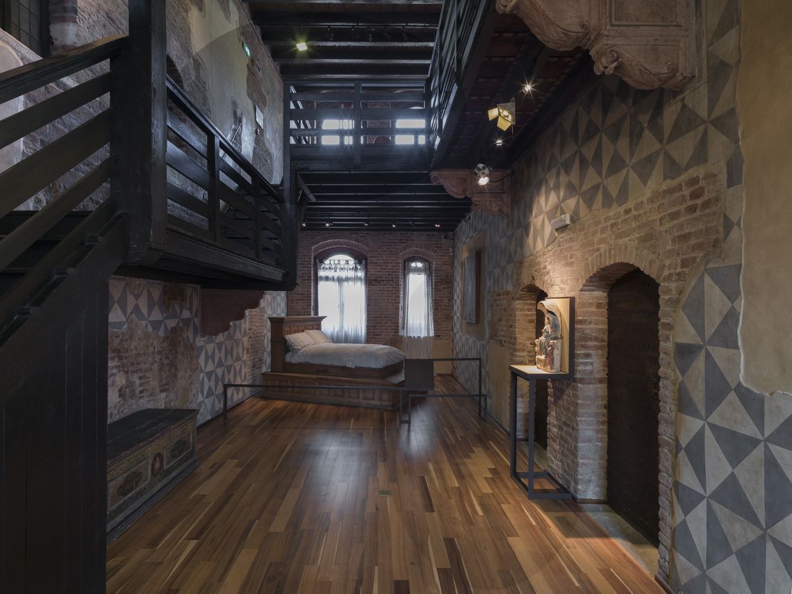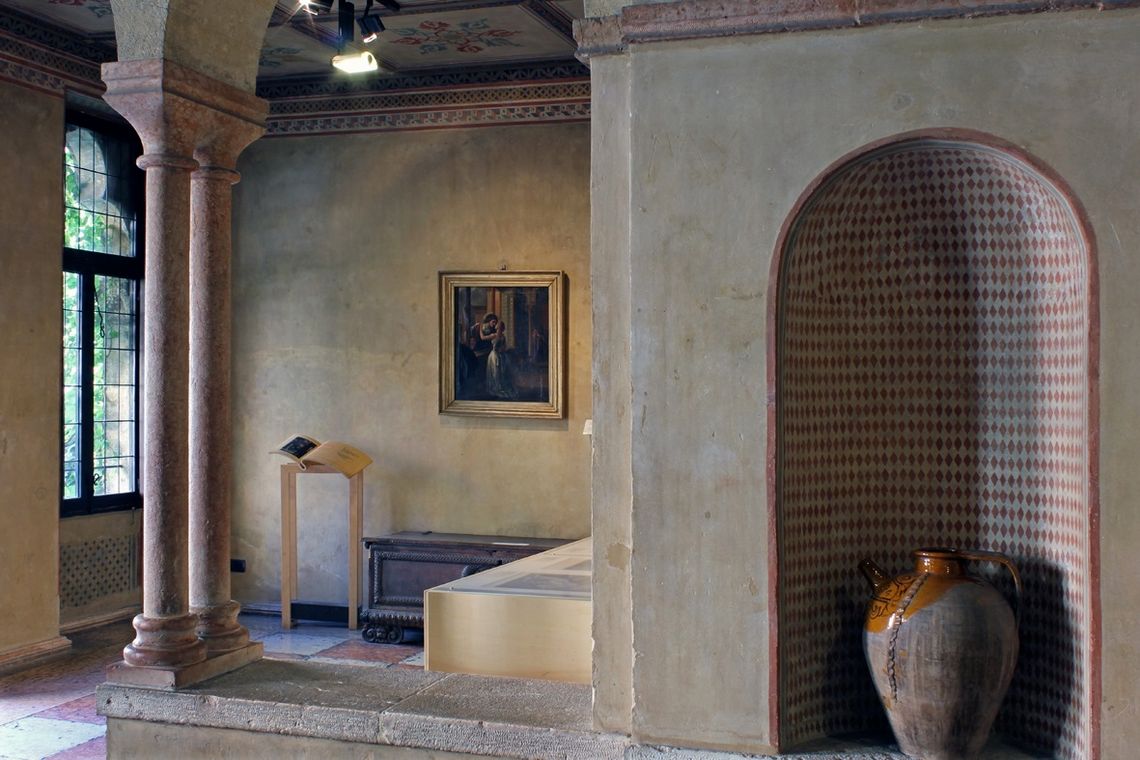 Nel cortile è collocata la statua in bronzo di Giulietta, opera dello scultore Nereo Costantini.