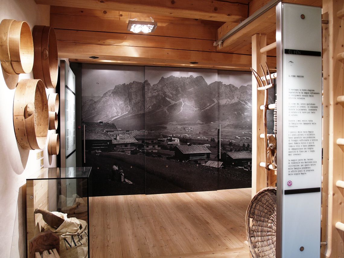 Attraverso un'esposizione selettiva di oggetti e di immagini il museo documenta alcuni aspetti importanti della cultura della comunità ampezzana: il patrimonio di tradizione, le modalità di gestione dei boschi e dei pascoli, il secolare rapporto tra uomini e territorio.
