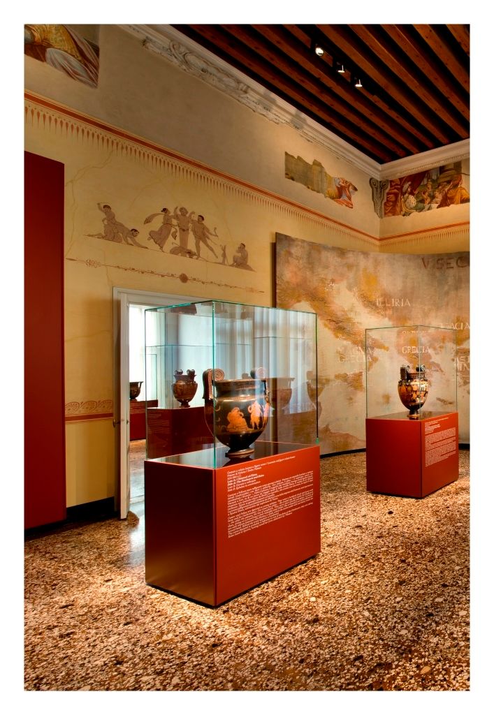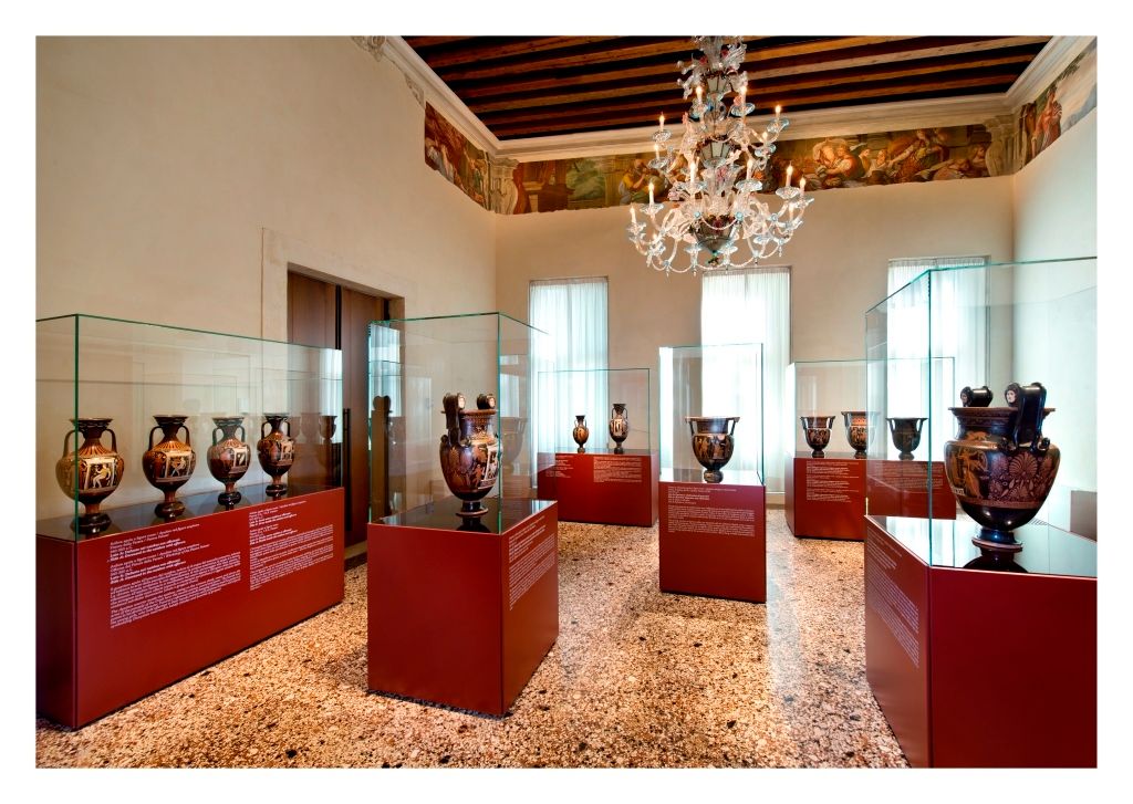 La collezione di ceramiche attiche e magnogreche è composta da oltre cinquecento reperti provenienti dalla necropoli di Ruvo di Puglia. I vasi, preziosa testimonianza della cultura e dell’arte della Grecia d’Occidente, furono prodotti tra il VI e il III secolo a.C. in Puglia e in Lucania o importati da Atene. All’utilità pratica si somma il valore simbolico e artistico rappresentato dalle scene mitologiche e quotidiane dipinte a figure nere o rosse ceramiche. In due sale al piano nobile del Palazzo vengono presentati a rotazione nuclei di vasi selezionati dalla raccolta, nell’ambito dell’iniziativa Il Tempo dell’Antico. Il progetto si articola in una serie di allestimenti costruiti attorno a un tema suggerito dalle pitture vascolari, che mirano a illustrare i momenti più significativi della vita e della cultura del mondo greco e magnogreco tra V e IV secolo a.C.
