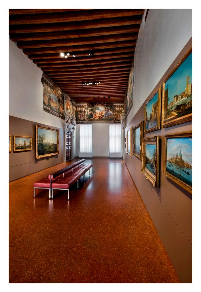 La collezione di pittura veneta del Settecento, che trova la sua naturale cornice in tre sale al piano nobile del palazzo, illustra tutti i generi pittorici che nel XVIII secolo posero Venezia e la sua scuola al centro della scena artistica internazionale. Il percorso si apre con il “gruppo Longhi”, 14 dipinti di Pietro Longhi e seguaci, che per ampiezza si affianca alle raccolte dei musei veneziani di Ca’ Rezzonico e Querini Stampalia. Vedute e capricci di Canaletto, Luca Carlevarijs, Francesco Guardi, Francesco Zuccarelli, restituiscono l’immagine della Venezia settecentesca e di altre città dell’Italia settentrionale. Chiude idealmente il percorso una sala dedicata alla pittura di storia e di ritratto, in cui è inserito un bozzetto a olio di Giambattista Tiepolo.