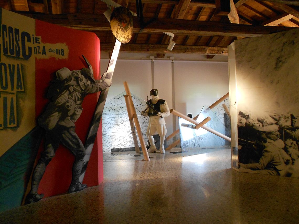 Si possono ammirare documenti, foto, armi e cimeli provenienti dai vari luoghi in cui il 7° Reggimento Alpini si è cimentato in tempo di guerra e di pace. La maggior parte delle collezioni è collegata alle vicende della Grande Guerra; a queste si aggiungono oggetti e documenti che ricordano le guerre italo-etiopi e la seconda guerra mondiale, in particolare quella combattuta sul fronte occidentale e sul fronte greco-albanese.