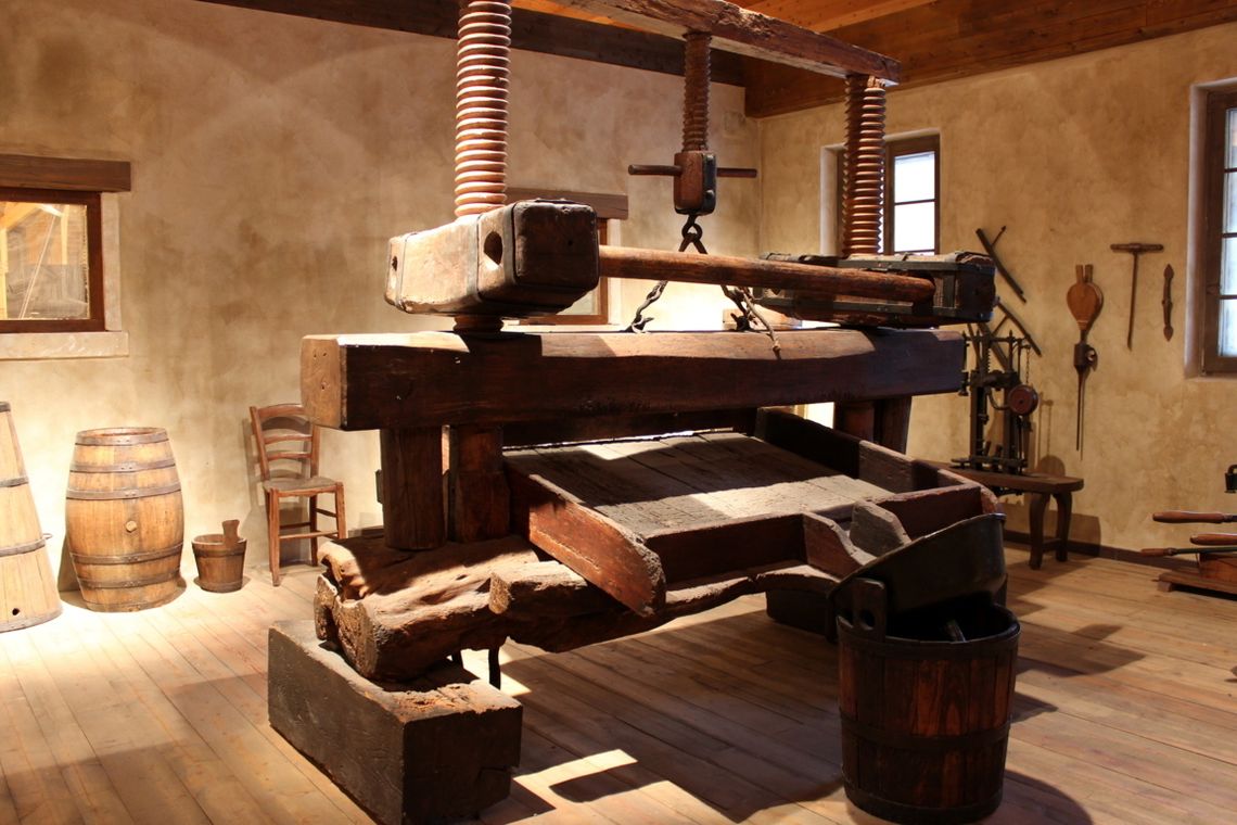 Chiude l'esposizione una bottaia dove le enormi botti ricche di intarsio e i minuscoli attrezzi per la pesa conferiscono all'ambiente un aspetto quasi sacro.