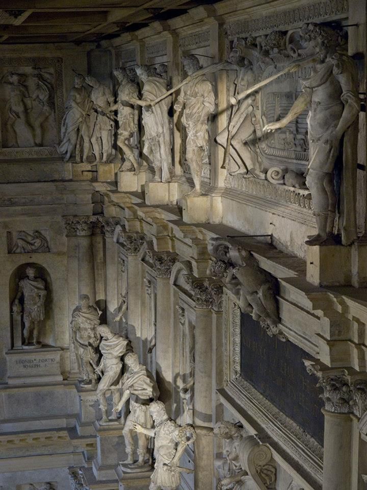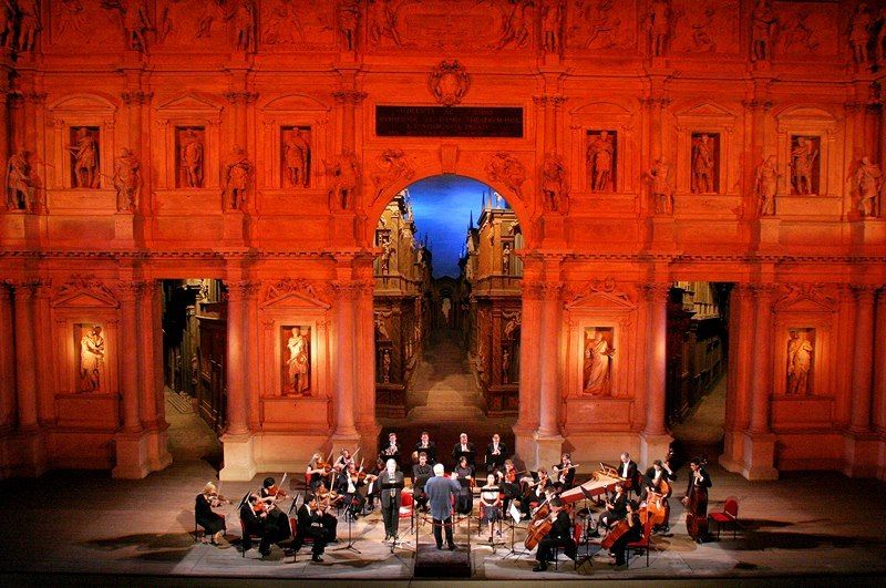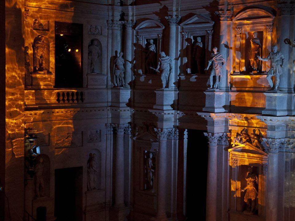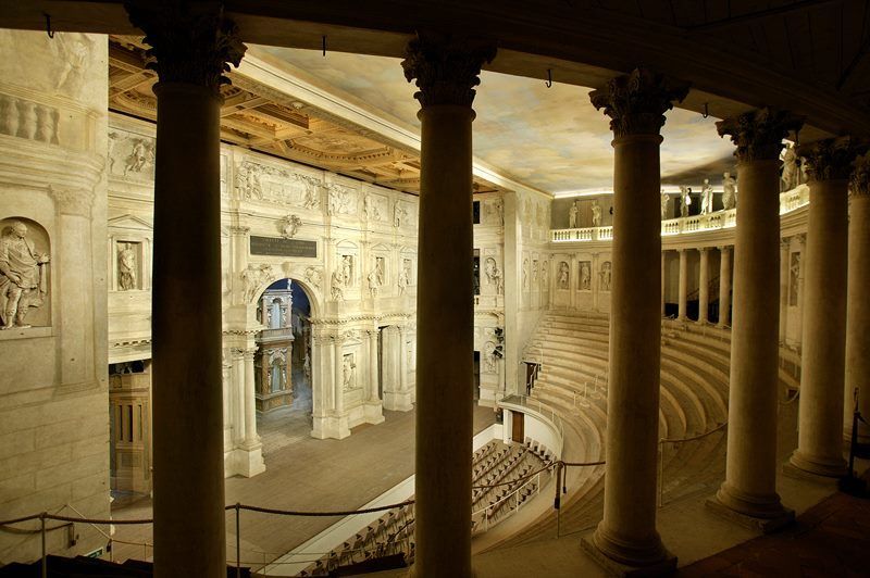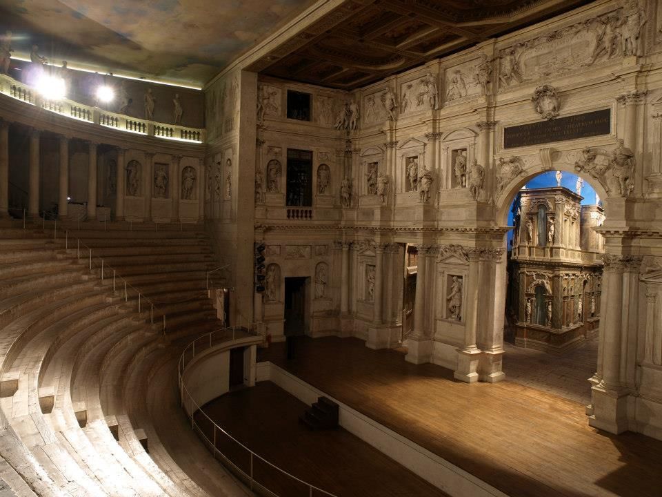 Ultima opera di Andrea Palladio, è ispirato ai teatri greci e romani dell'antichità. Commissionato nel 1579 a Palladio dall'Accademia Olimpica, lasciato incompiuto nel 1580 per la morte dell'Architetto, è stato ultimato da Vincenzo Scamozzi con le celebri scenografie prospettiche rappresentanti le vie di Tebe e inaugurato nel 1585 con la rappresentazione dell'Edipo Tiranno di Sofocle.