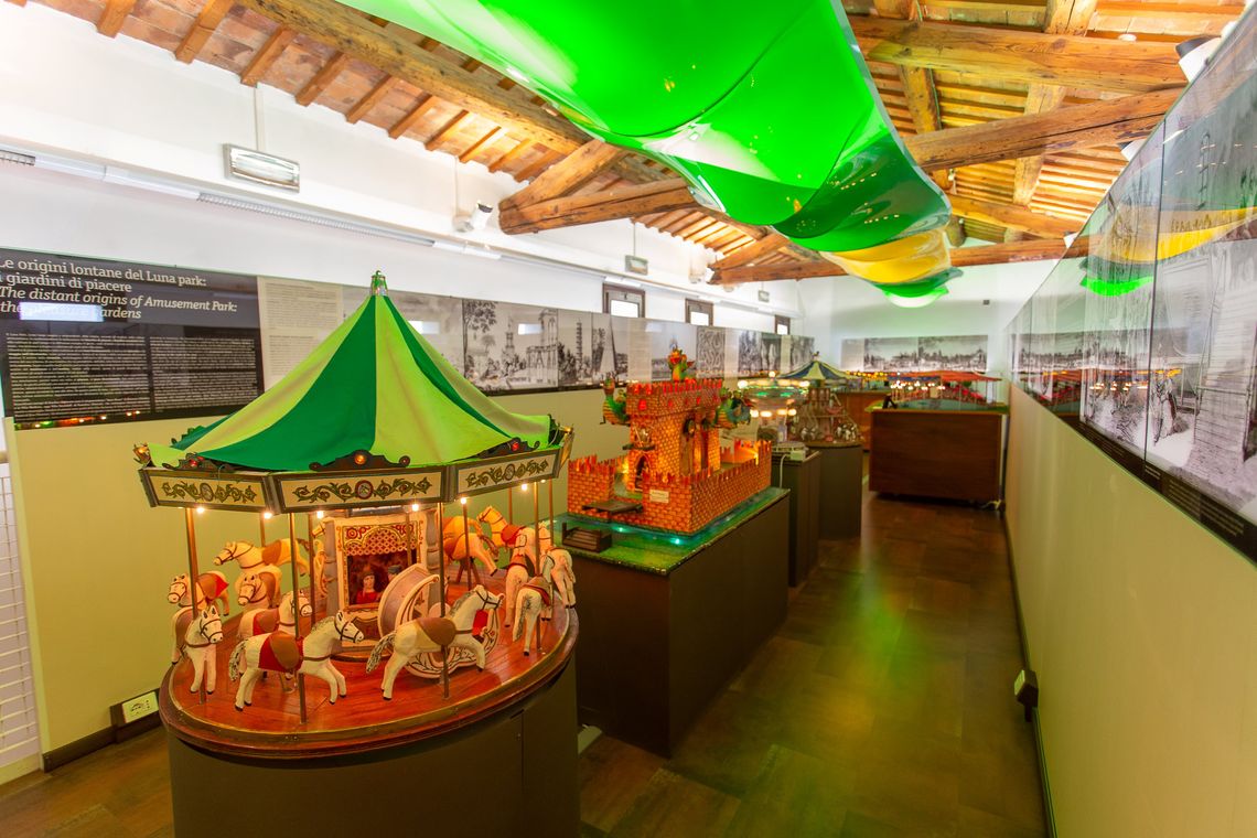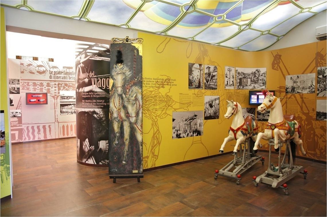 1) la storia della Fiera e del Luna Park, con particolare attenzione all’area italiana; 2) la storicizzazione delle giostre più popolari, nella loro evoluzione dai giochi rituali delle società più antiche fino alle moderne giostre di vertigine; 3) le origini dello Spettacolo Viaggiante di Bergantino e del Distretto Veneto della Giostra.