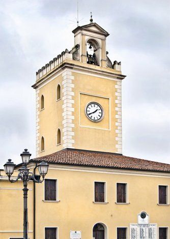 Fu in quell’anno che il Comune decise di rialzarla e di munirla di un orologio, acquistando anche una campana in disuso dal Comune di Bagnolo di Po per collocarla sulla sua torre in modo che chiamasse a raccolta i consiglieri del Comune.