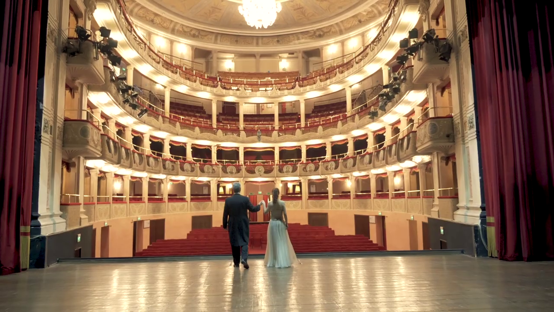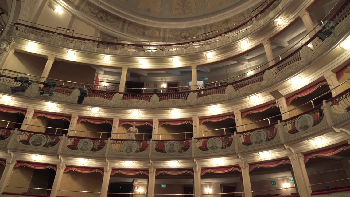 Distrutto da un incendio la notte del 21 gennaio 1902, che risparmiò la facciata neoclassica e il fastoso foyer, fu ricostruito secondo un nuovo progetto, tra i primi ad adottare i canoni dello stile liberty e un sapiente uso del cemento armato per questa particolare destinazione d’uso che ne giovò in termini d’acustica. L’incantevole tenacia di questo luogo gli ha permesso di continuare ad ospitare opere liriche e spettacoli di danza, opere teatrali, concerti, musica jazz e una grande varietà di iniziative per il pubblico più giovane. Nel breve video diviene teatro di un incontro tra due anime che hanno trovato nel linguaggio della lirica il miglior veicolo dei loro sentimenti.