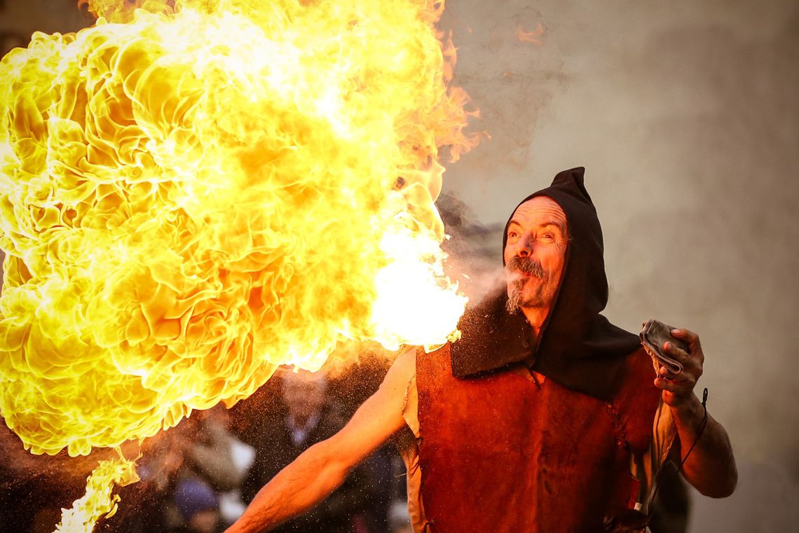 All’interno del mercato non mancano musici e saltimbanchi, falchi e cavalieri, osti e fantesche, nonché combattimenti d’arme.