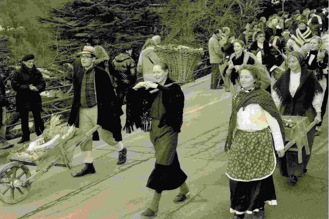 Con i primi tempori primaverili che scioglievano il ghiaccio invernale, centinaia di pastori, mandriani, contadini, e le loro famiglie scendevano in paese, abbigliati con fogge e costumi stravaganti, accompagnati dagli animali, inseriti in mezzo a questo grande e allegro corteo. In testa alla folla sfilavano i cacciatori che, tra una danza e l'altra, salutavano a salve l'arrivo di marzo.