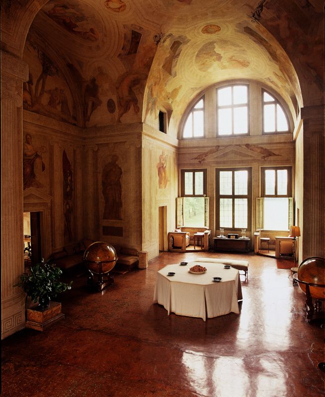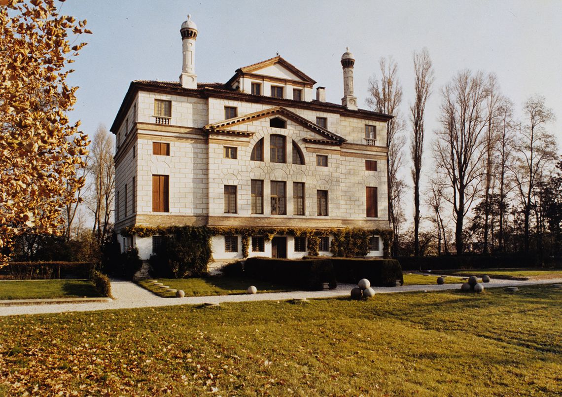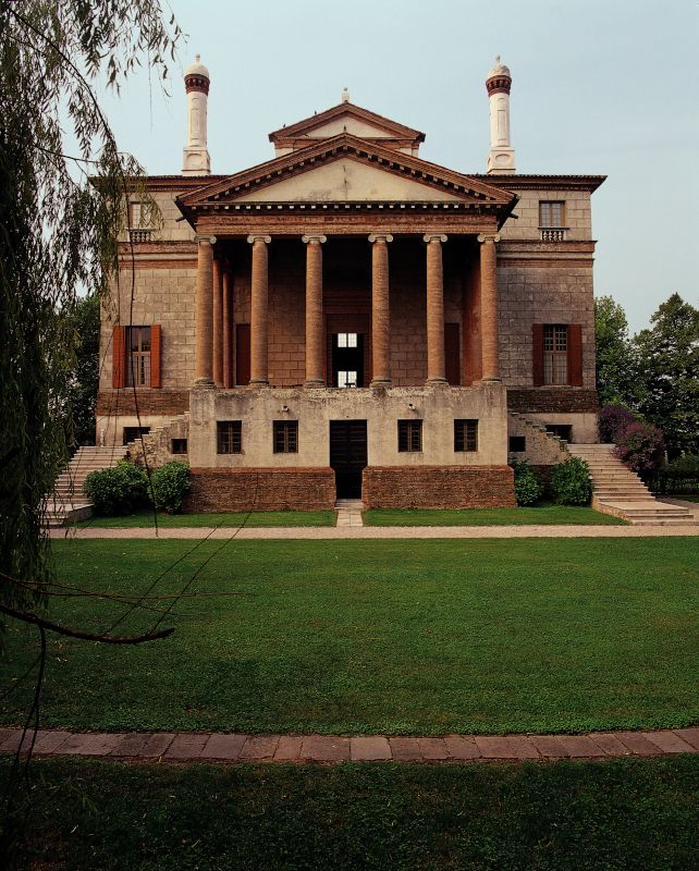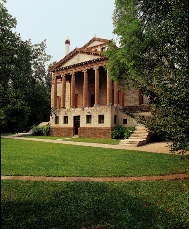 Tra le più maestose realizzazioni del celebre architetto, l’edificio, appartenente alla tipologia della cosiddetta ‘villa-tempio’, presenta sulla facciata anteriore un monumentale pronao colonnato e frontonato, che rielabora il modello antico del Pantheon romano, mentre il disegno del prospetto posteriore finestrato, con un sistema centrale di ampie aperture, si ispira all’esempio delle Terme di Diocleziano. Nel salone interno le scene mitologiche ad affresco, purtroppo molto danneggiate dal tempo, sono opera di Giovan Battista Zelotti. Sia pur priva di fondamento, la leggenda che legava la villa al ricordo di una sventurata dama del casato dei Foscari ha contribuito ad accrescere il fascino del luogo nell’immaginario popolare, ma in realtà il toponimo Malcontenta, preesistente alla fabbrica palladiana, trae origine con ogni verosimiglianza dall’acqua del Brenta, “male contempta”, ovvero non regimentata, giacché in quel sito erano frequenti le esondazioni del fiume nei periodi di piena.