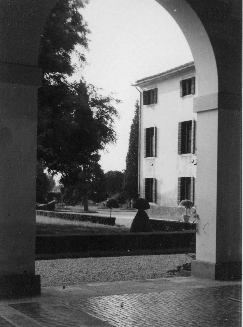 Documentata ora soltanto da alcune vedute d’epoca, l’architettura presentava un ordine gigante di lesene; illusionistiche balaustrate, da cui sembravano sporgersi varie figure, erano state affrescate da Giovan Battista Zelotti: se ne conservano presso le Gallerie dell’Accademia di Venezia pochi frammenti, staccati prima dell’abbattimento, tra i quali quello con la Suonatrice di chitarra che ha poi dato il nome alla residenza. Dalla parte opposta rispetto al corso del Brenta, sopravvivono ancora la barchessa e altri annessi rustici, con un’elegante sequenza di arcate a definire il portico in facciata, e, in adiacenza, la cappella gentilizia, forse risalente alla fine del Seicento.