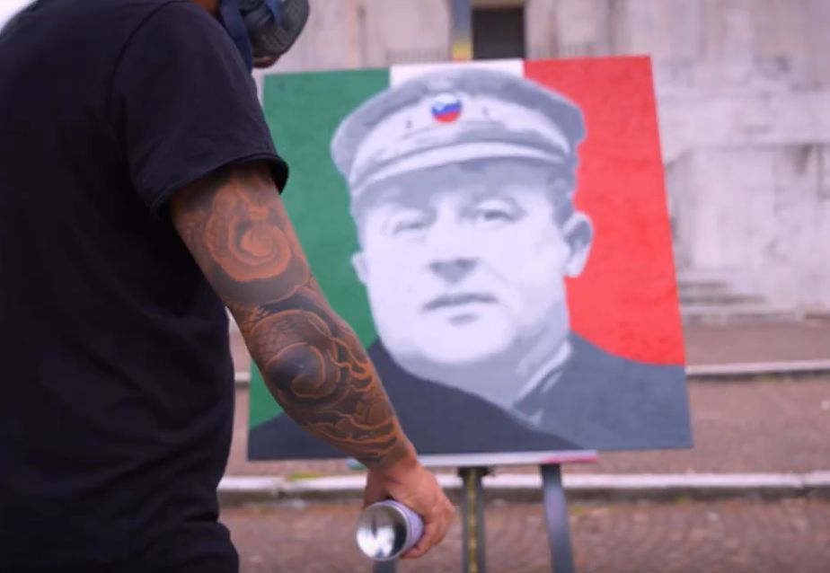 Manuel Giacometti, street artist professionista, omaggia con un’opera di spray art la memoria del celebre irredentista istriano Nazario Sauro, giustiziato nel 1916 dagli Austriaci con l’accusa di alto tradimento. I suoi resti riposano in questo Sacrario.