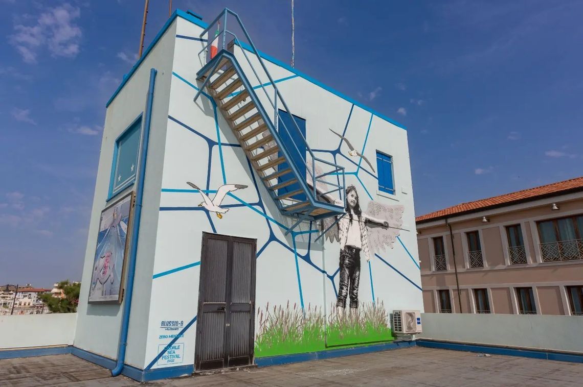 Il senso dell’opera di Alessio B e Zero Mentale, realizzata per la sede dell’Associazione Nazionale Marinai d'Italia, può essere riassunto con questa frase di Jim Morrison “Ognuno di noi ha un paio di ali, ma solo chi sogna impara a volare”.