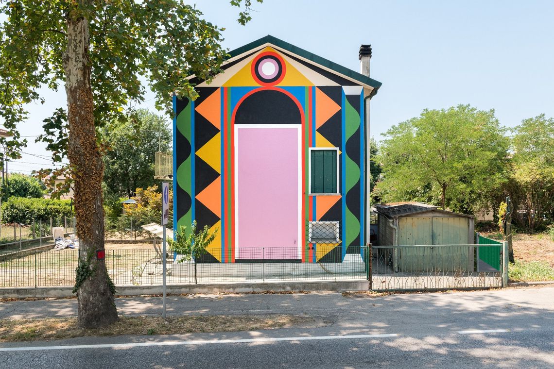 Agostino Iacurci crea una porta monumentale, soglia simbolica di Vallà. Il tema del portale è caratteristica tipica dell’architettura della zona: dalla facciata di Villa Emo e Villa Maser del Palladio, al neoclassico Tempio di Canova e alla Tomba Brion di Carlo Scarpa
