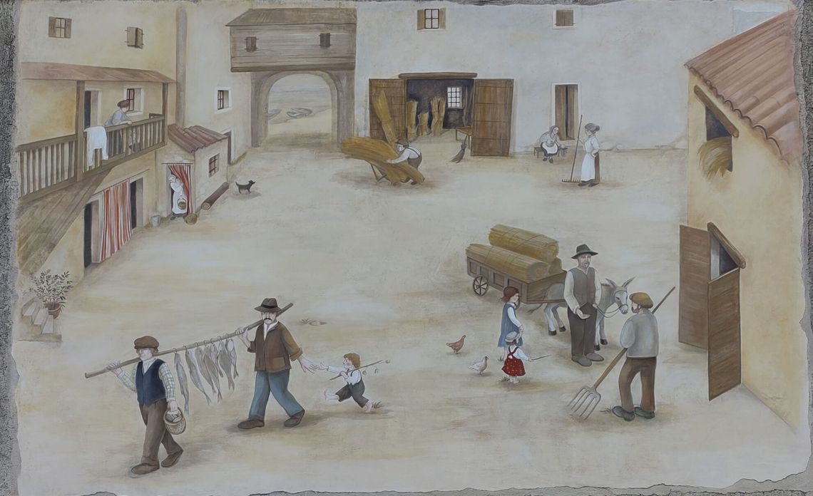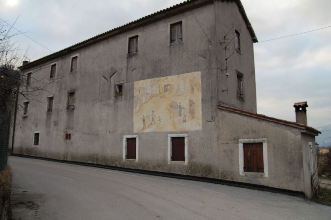 Opera di Chiara Piccin, rappresenta il cortile di una casa di campagna soffermandosi sui mestieri tradizionali. L'affresco originale risale al 2009; in seguito il murale è stato rielaborato da Mariateresa Casagrande che ha restituito la vivacità dei colori con pittura murale e silicati.