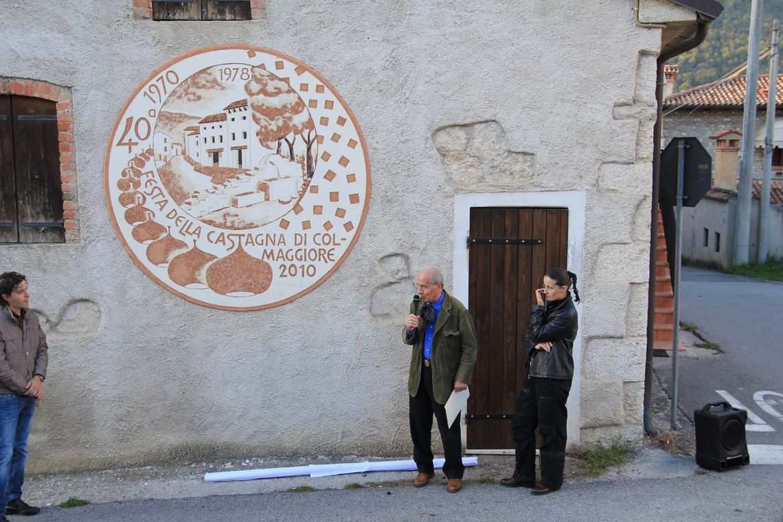 Opera del Maestro Medagliere Giuseppe Grava e della figlia Gilda, il murale è stato realizzato in occasione del 40’ anniversario della Festa della Castagna, prodotto tipico locale. Particolare è la tecnica del graffito che costringe a concludere il murale mentre l’intonaco è ancora fresco.